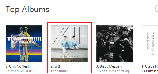 Daily CD album ranking for 141216: No.1 Tohoshinki – WITH with 162,790 copies! Best 1st day Album sales so far for Tohoshinki~