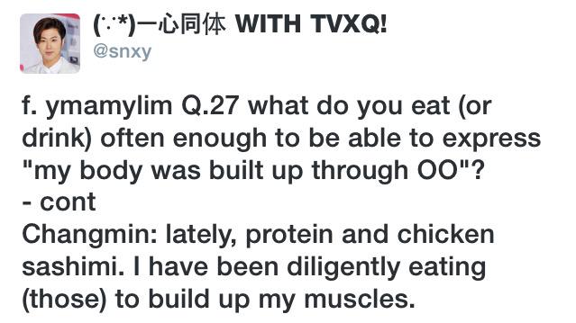 [ViVi Spoiler] Q.27 Tohoshinki on things they have been eating a lot of www ice choco =\= protein f: ymamylim