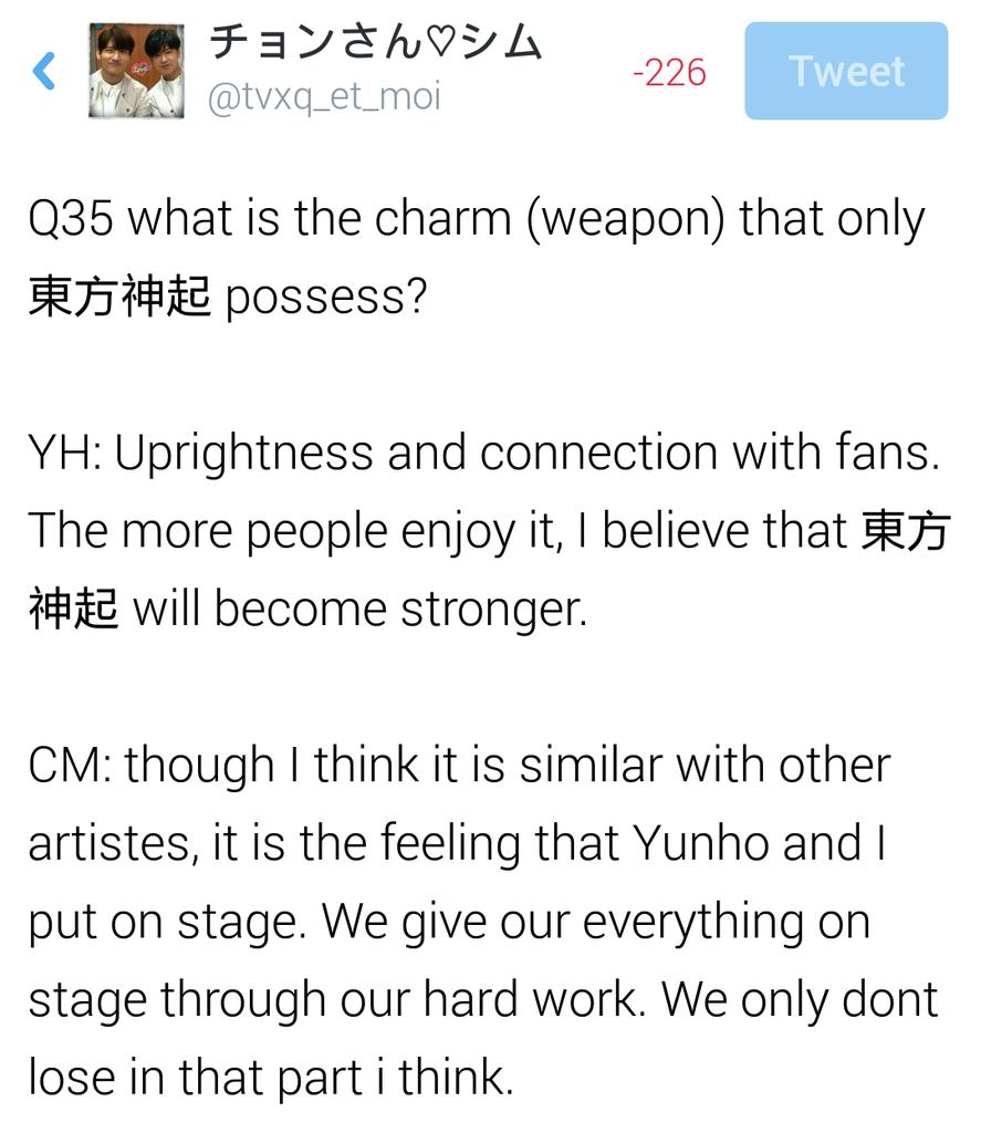 Pingback: [Partial Trans: Q13~Q29, 41, 43] Tohoshinki for JP Magazine 「ViVi」- May Issue 2015 (Released on 150323) (Part.4) | TVXQ! Express
