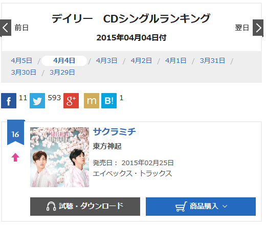 There has been a noticeable positive effect on SAKURAMICHI’s sales following Tohoshinki’s appearance on the popular Japanese music show “MUSIC STATION” (on 150403), which was their first time since their last performance (ANDROID) on 2012!
