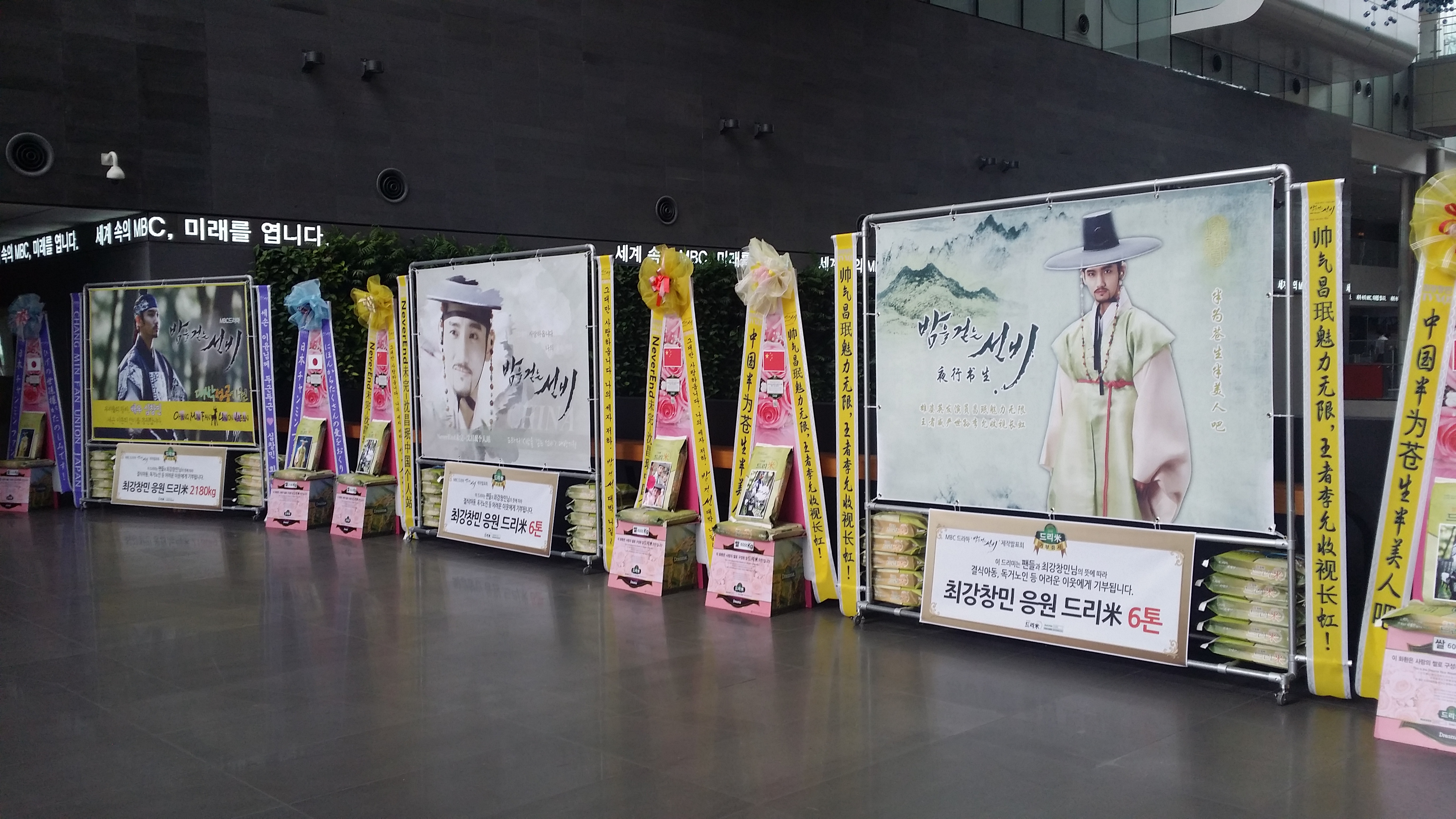 Today is Changmin’s MBC Drama “Scholar Who Walks the Night” press conference (to start in a few hours, can be watched live online here), and from the photos shared here we could see that the rice wreath fan support for Changmin was a total of 47.5 tons!!