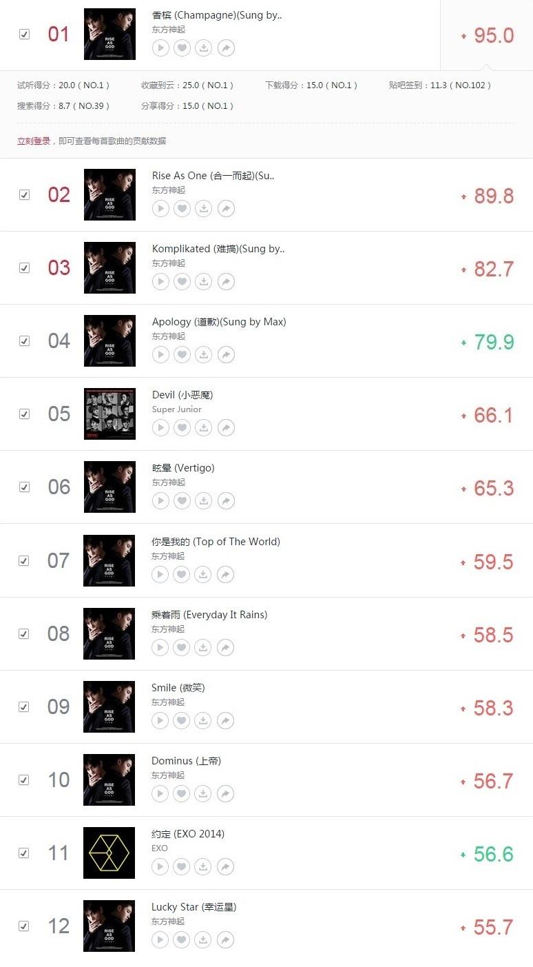 - Both the daily chart and real time: No.1 TVXQ! – Rise As God: Special Album.