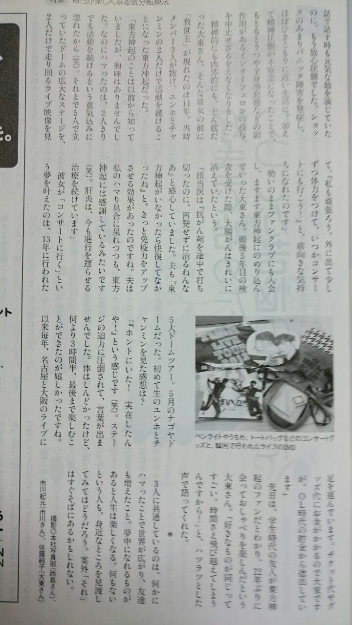 in fuji koron mag “as i was fully absorbed in tohoshinki, i made a full recovery from cancer” report