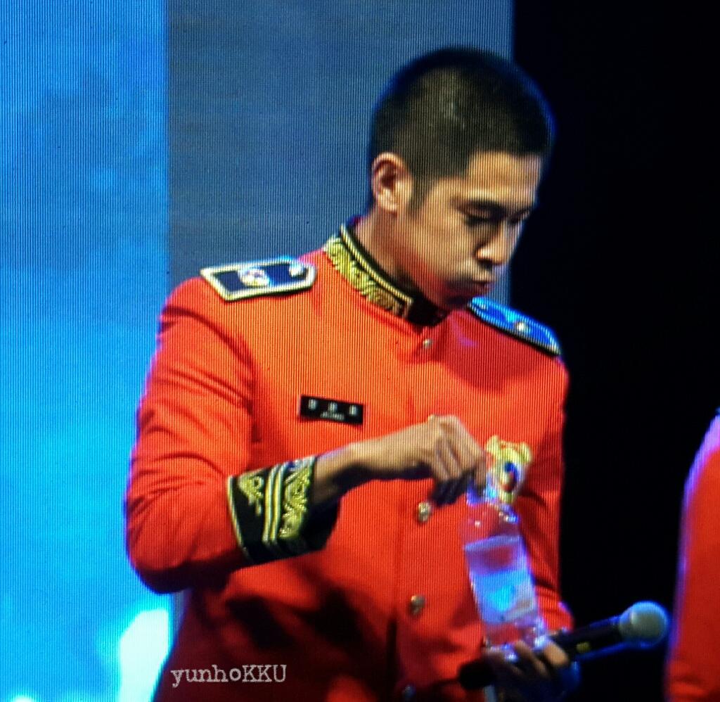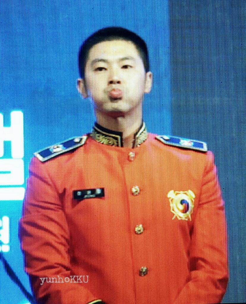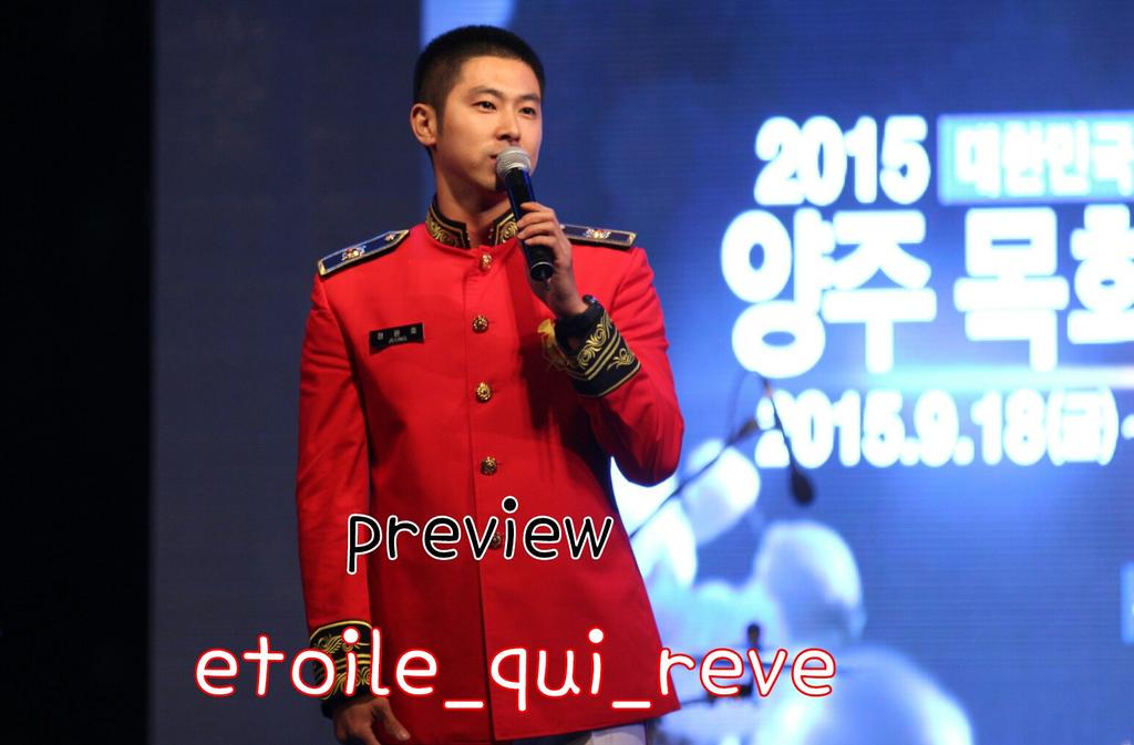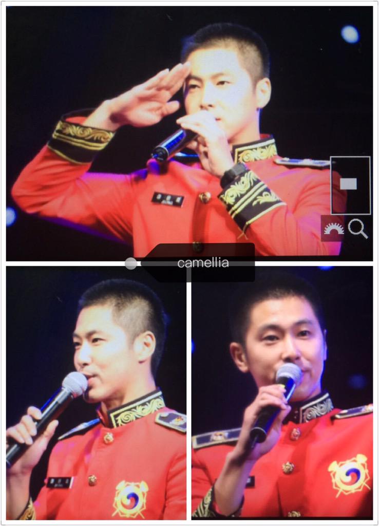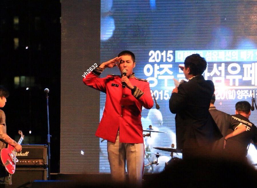 Yunho with his Military Band members for their performance at the 2015 Yangju Cotton Festival. They sang TVXQ!’s Mirotic, Dream, Hug and Love in the Ice!