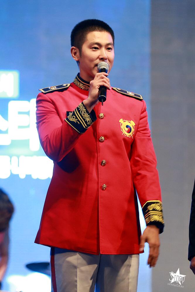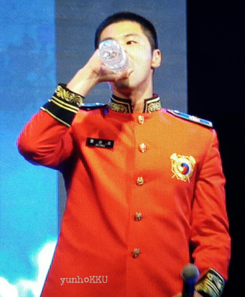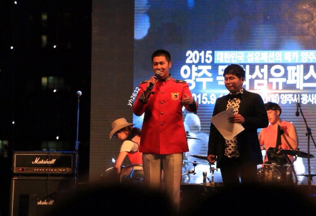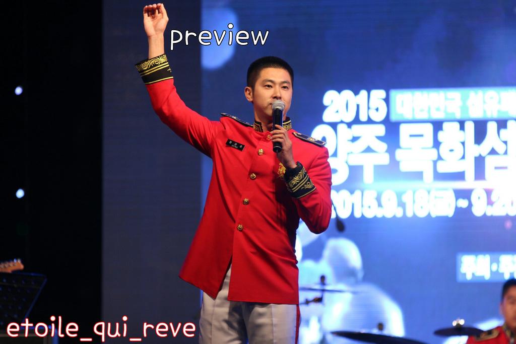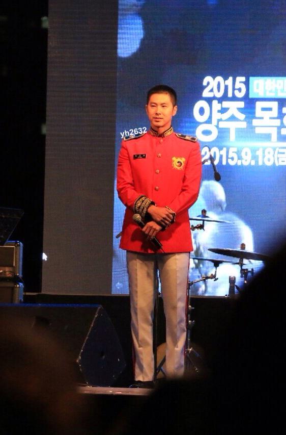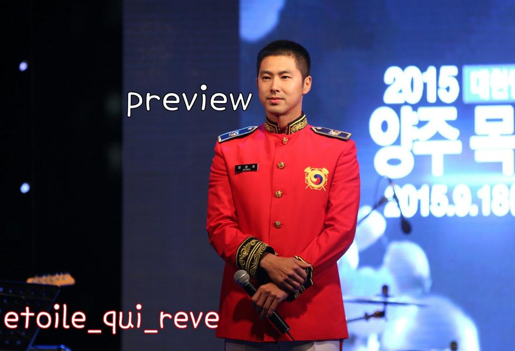 Yunho with his Military Band members for their performance at the 2015 Yangju Cotton Festival. They sang TVXQ!’s Mirotic, Dream, Hug and Love in the Ice!