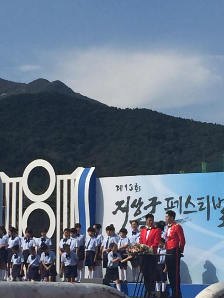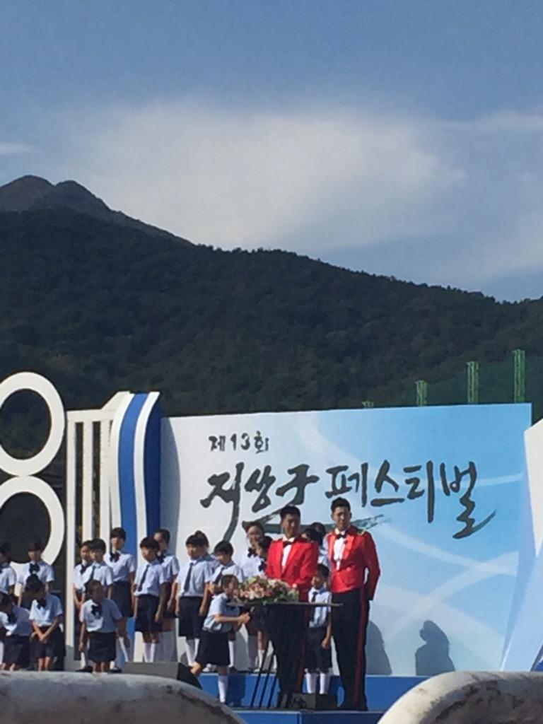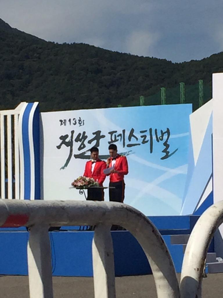 Like yesterday, for the morning event his co-emcee was the lady soldier from yesterday’s afternoon event, and for the afternoon event his co-emcee was Kang Dongho.