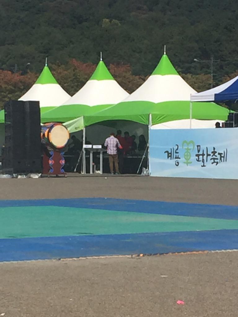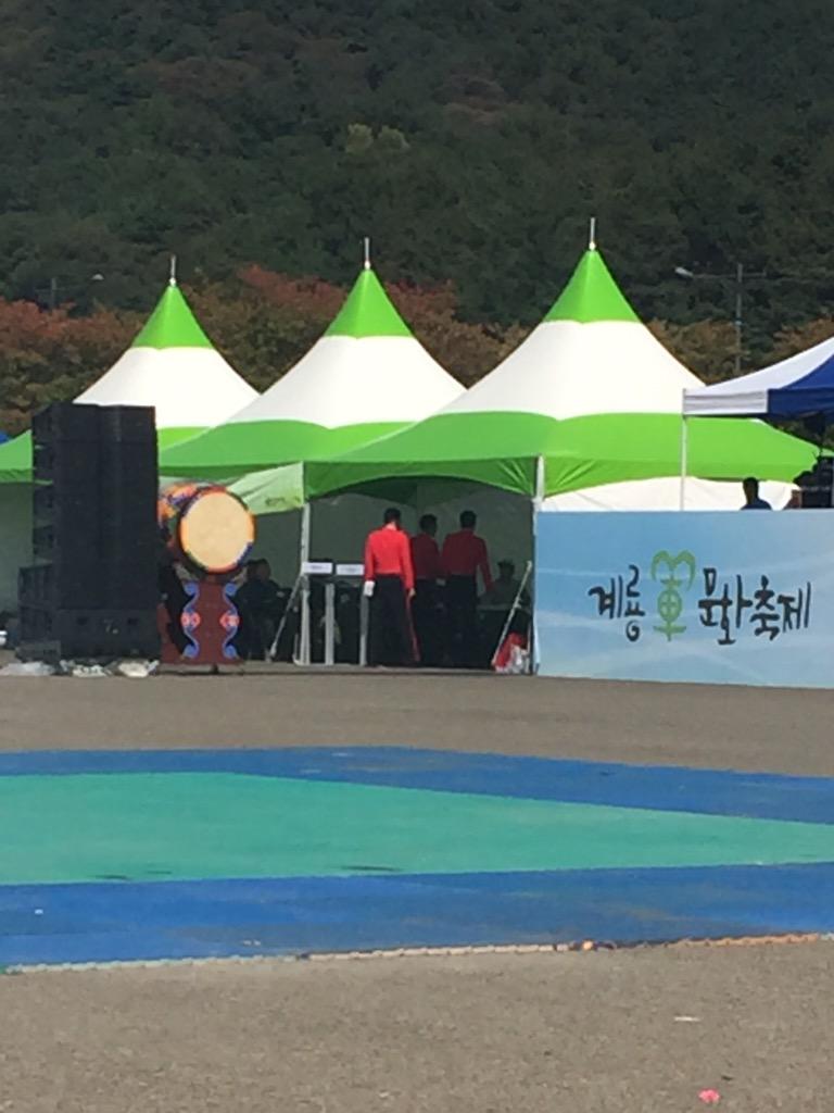 #fail - Spotted dongho, coordi and yunho’s manager and friend walking into the tent on the left side.