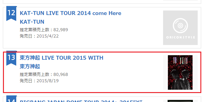 No.15 “Tohoshinki LIVE TOUR 2015 WITH” with 80,968 copies~