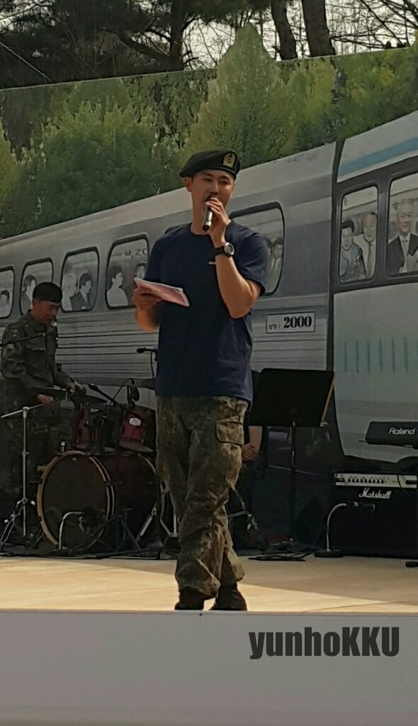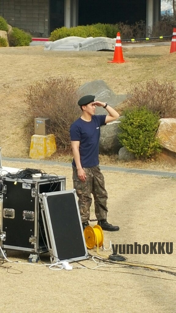 - From friends- Yunho’s rly cute ㅜㅜ he’s wearing a black t-shirt, army camo pants and a beanie? on his head ㅜㅜ