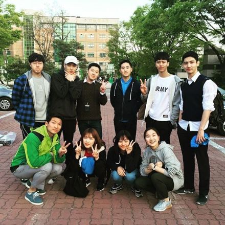 A commemorative photograph of the filming team & lead actors & original author of the best UCC scenario “Neverending” for School Violence Prevention.