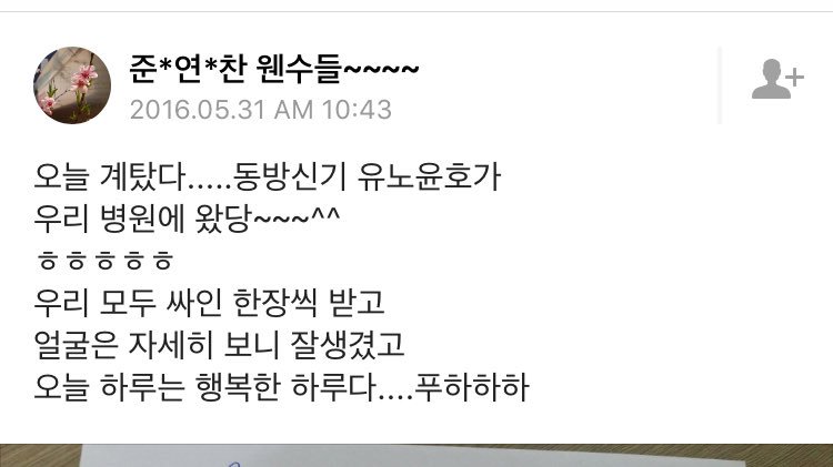 Yunho came to OP’s hospital today and signed one for everyone. She said she looked at him carefully and he was really good-looking. Today has been a happy day puahahaha