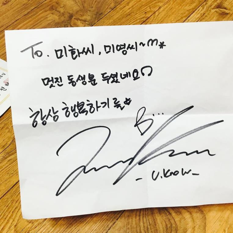 Yunho went to her dongsaeng’s camp and he got her his sign.
