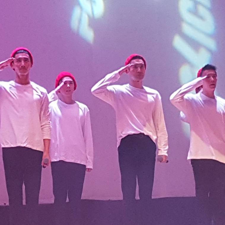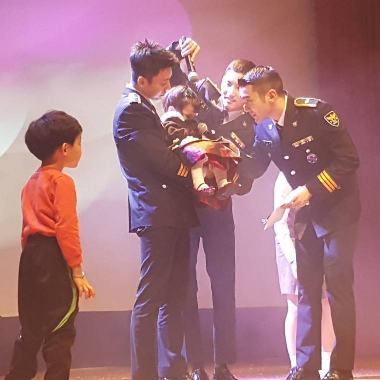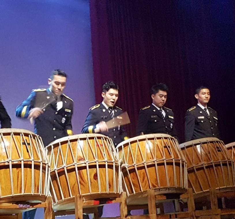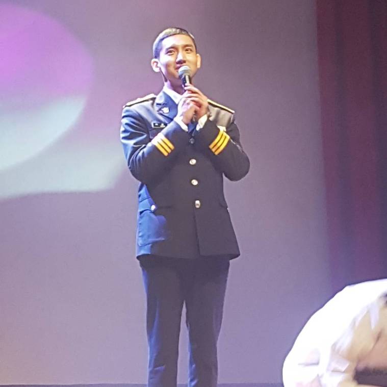 Our corporal constable Changmin performed at a SMPA promotions unit and police band Healing Concert. He did the trot medley, and performed Nanta (traditional drums) with the unit. They danced to the way you are too~ In red hats and white shirts they performed Balloons and H.O.T.’s Happiness