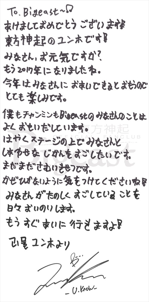 Letters from Yunho and Changmin to Bigeast have arrived.