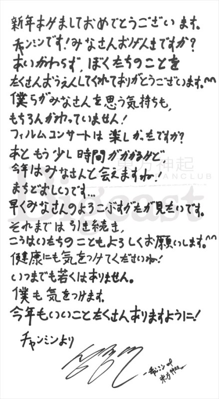 I as well, Changmin, as well, have been thinking a lot about all of you Bigeasts.