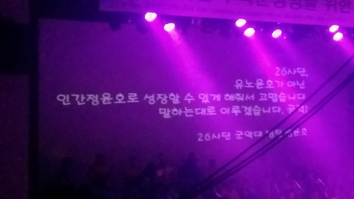 “26th Division, thank you for letting the person, not U-Know Yunho but Jung Yunho, grow. As (I) have said, (I will) fulfill. Attack! (*the rally cry of Korean soldiers)