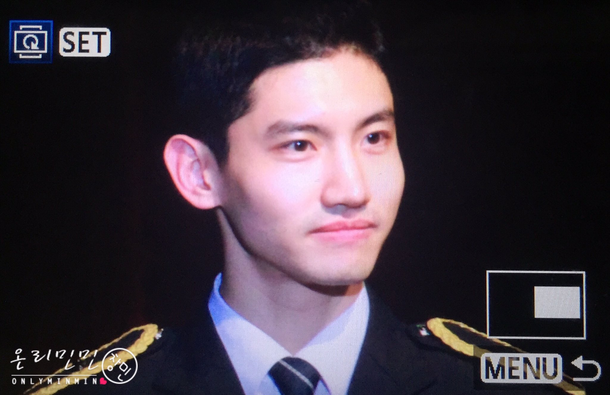 At the end when they all stood on the stage with the boards, he waved to fans as he left, and the unit chief also held his hand to wave more > w <! You can see him waving his fans from inside the bus as it was leaving too~