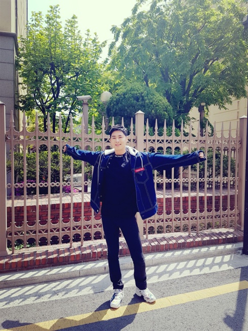 {p/n: last photos seem from today at SM communication center’s SUM Cafe~ Also the jacket he is wearing has some of tvxq sum pins and goods on it~}