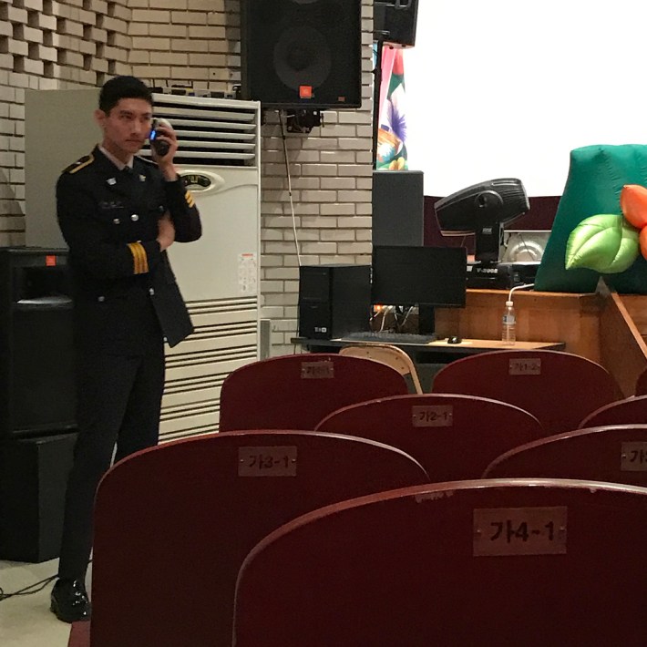 OP says she was late to arrive but he Still greeted politely when they entered and asked them where they were going; he was nice and explained gently ;;