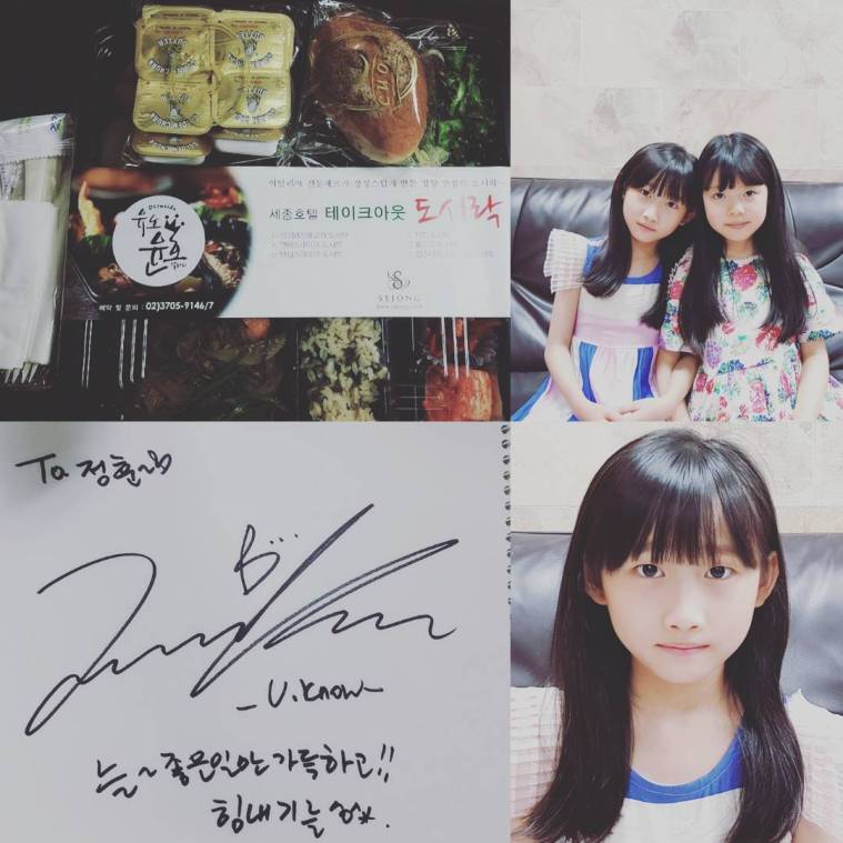 Lee Sarang, a child actor who’s acting with Yunho on Meloholic, posts picture of Yunho’s drama fansupport dosirak and autograph received