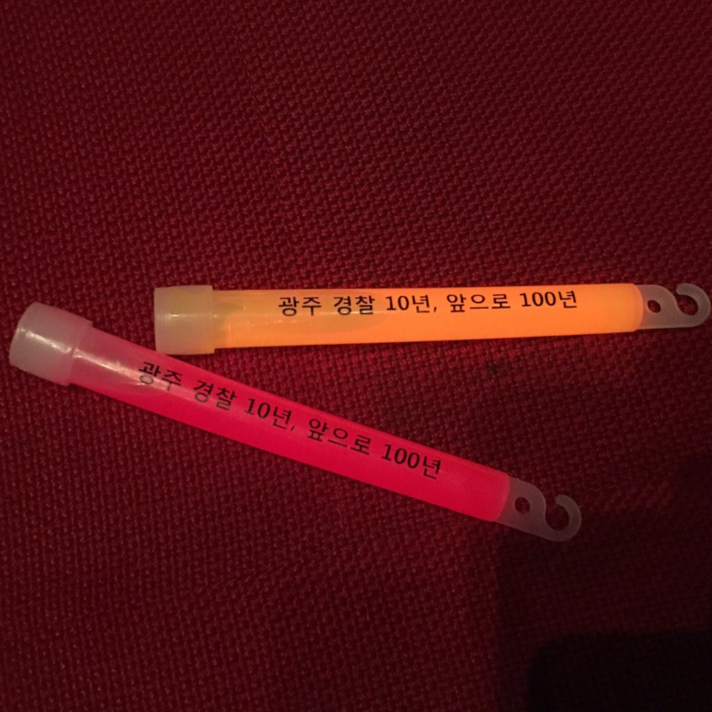 [cr: @2for1T] - they were giving these lightsticks out at the gwangju police concert (“gwangju police 10 years,from now on, 100 years)
