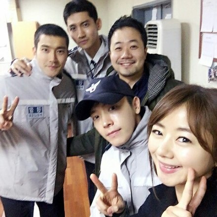 Changmin with his police unit members, Siwon and Donghae who will be discharged tomorrow~