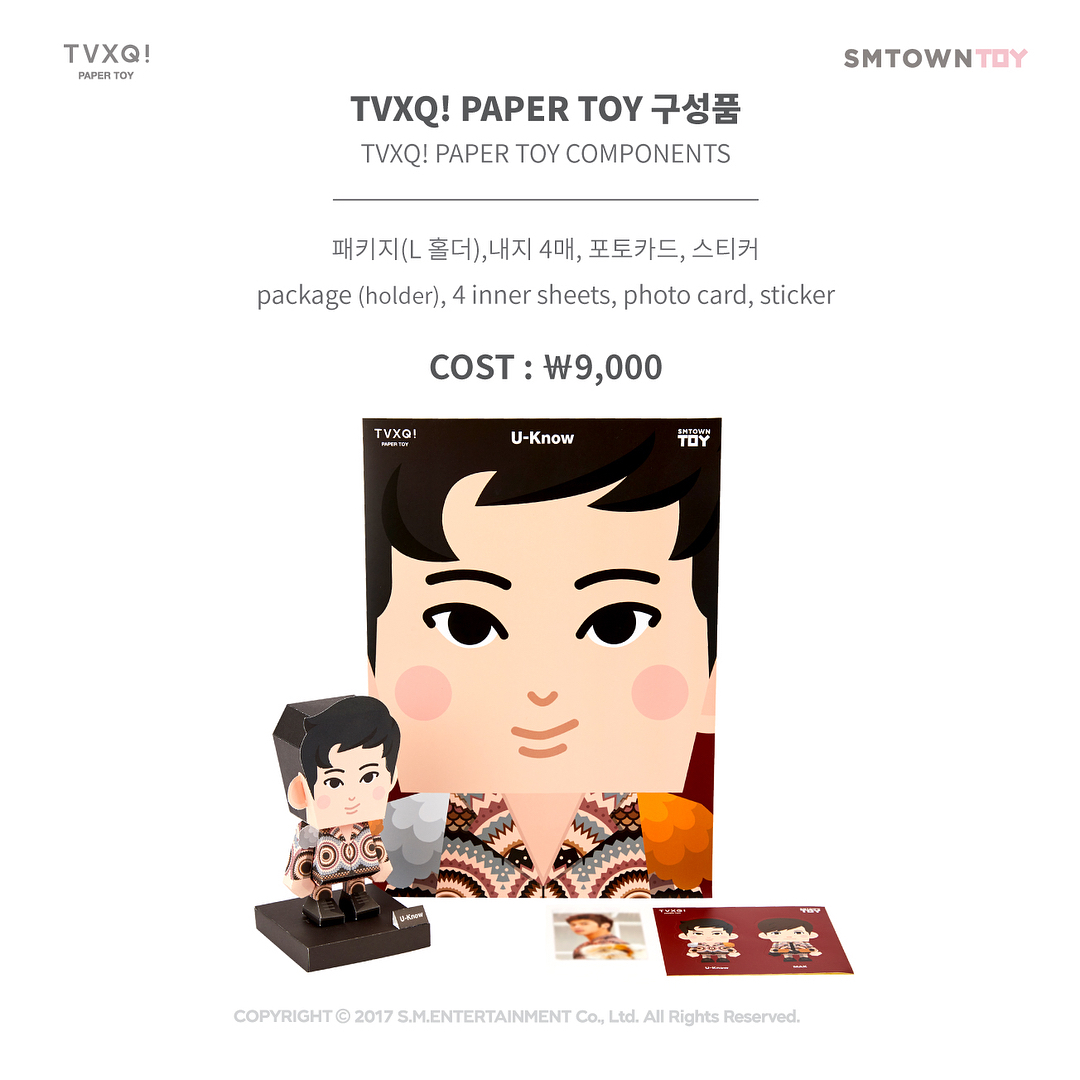TVXQ! PAPER TOY components: Package (holder), 4 inner sheets, photo card, sticker
