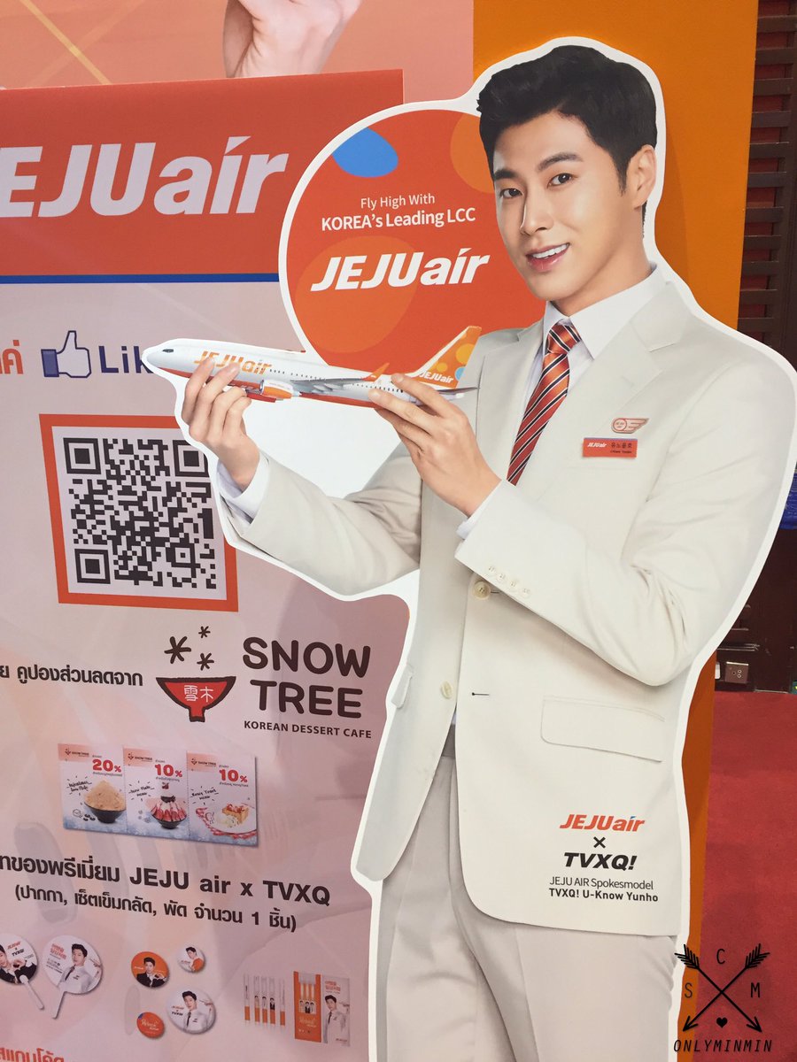 It seems like there’s a travel fair in Thailand now and Jeju Air has a booth there with Yunho Jeju Air goods being given out too~