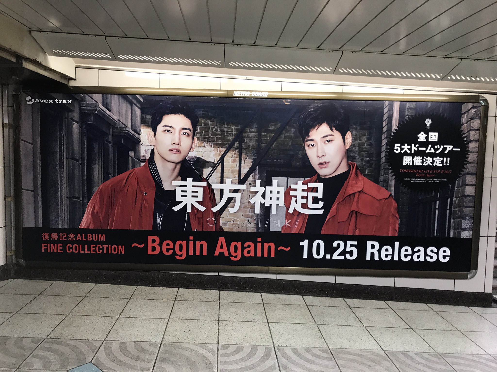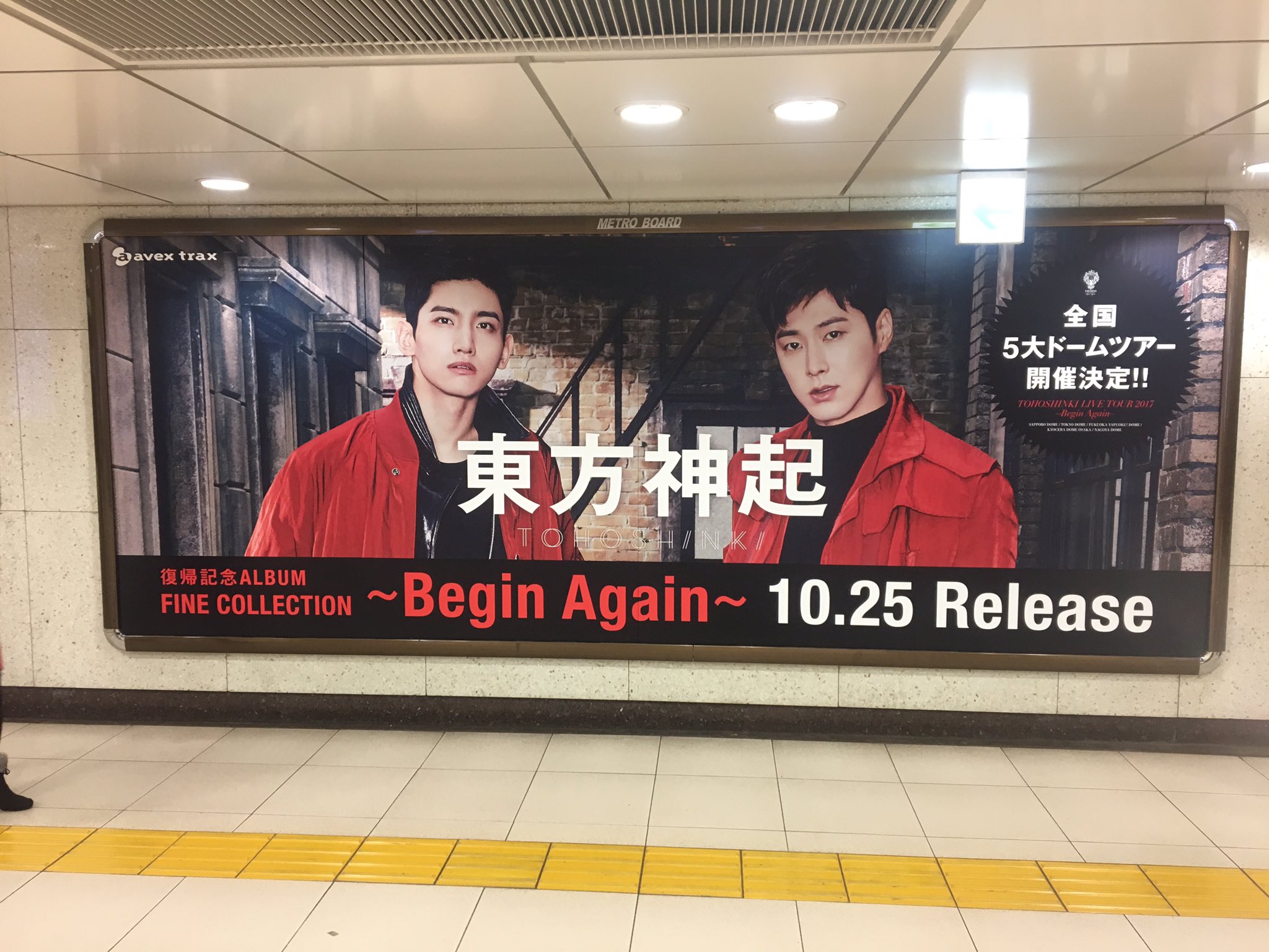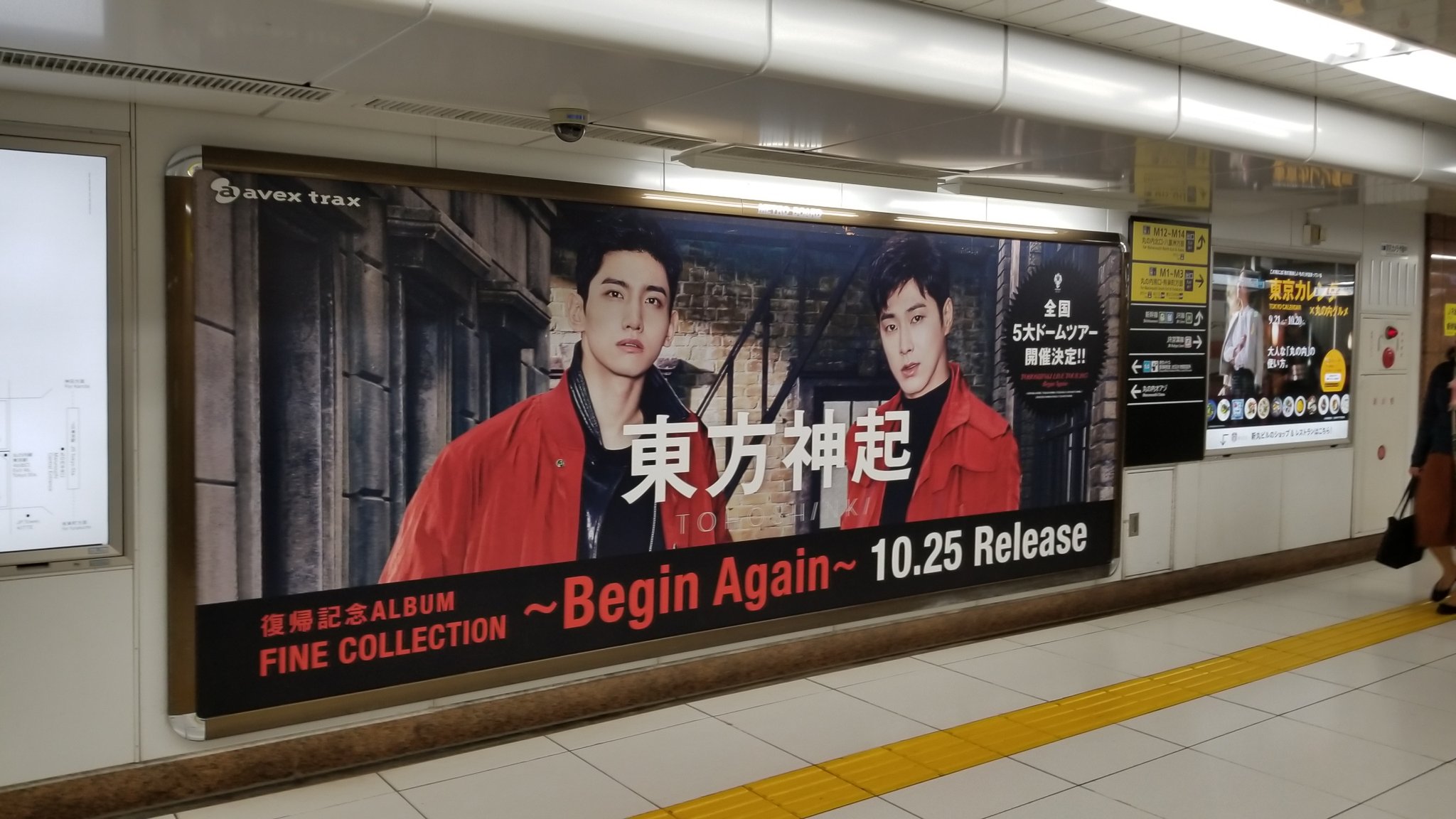 Tohoshinki billboards and adds for Album FINE COLLECTION~Begin Again~ at different subway stations and trains in Tokyo!
