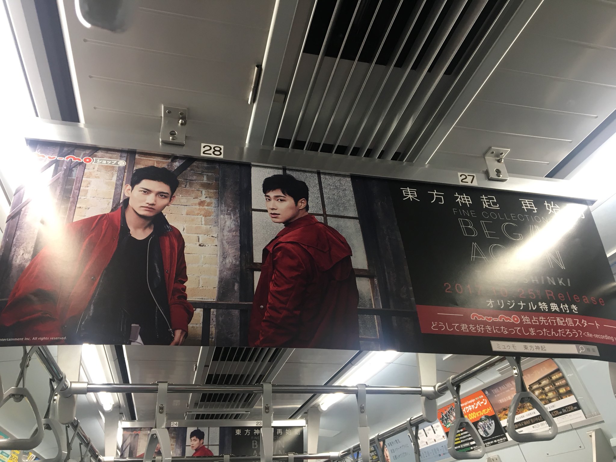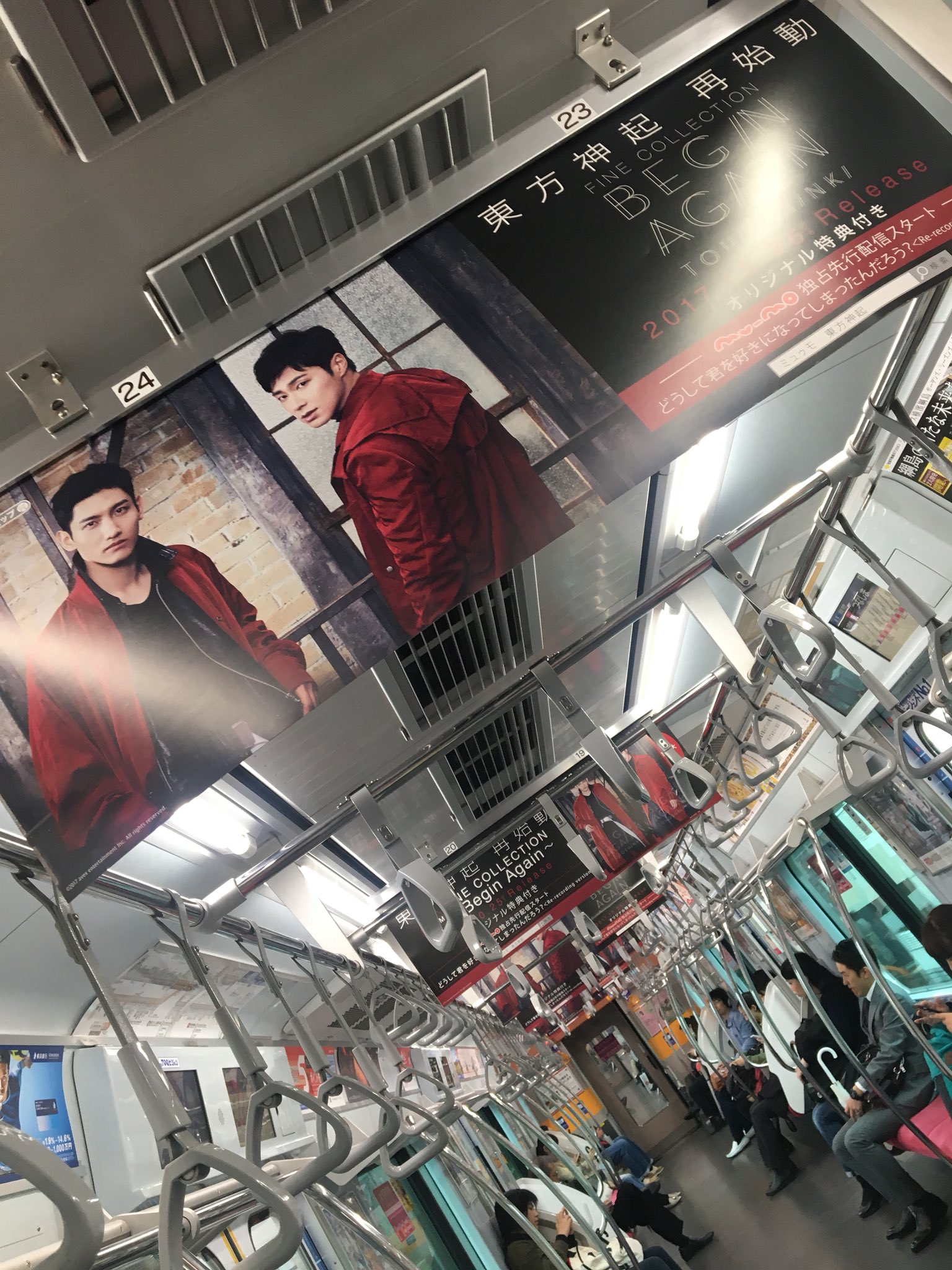 Tohoshinki Ads for Album FINE COLLECTION~Begin Again~ were spotted inside the cars of Toyoko Line, Tokyo!