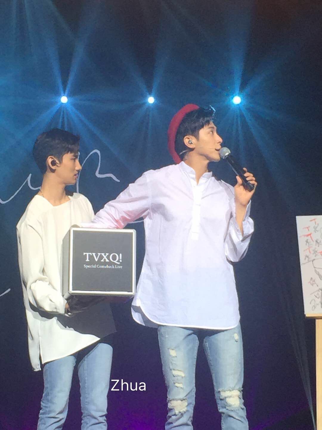 Despite the typhoon hitting the city, TVXQ! Special Comeback Live – YouR PresenT – in Macau was held at the Studio City Event Center with a delayed start (From 6PM) at 8PM ChinaST! The show was similar to Seoul’s except for no letters-reading segment. Huge thanks to all the fans who made it despite all these conditions, and those who couldn’t, we are glad that you are safe and we hope you get to seem them on another chance ; ;