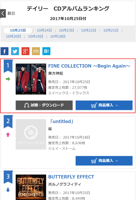 On its 2nd day, 東方神起 Album「FINE COLLECTION~Begin Again~」topped Oricon Daily Album ranking with 27,077 copies! The album has sold a total of 108,868 copies in two days~ > w <