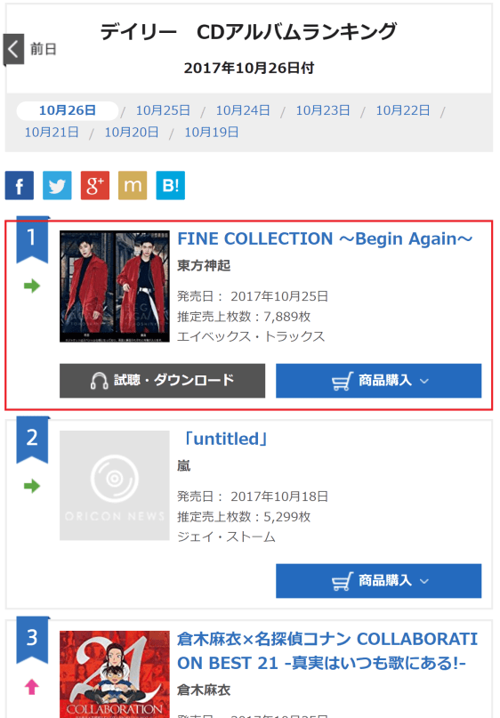 On its 3rd day as well, 東方神起 Album「FINE COLLECTION~Begin Again~」topped Oricon Daily Album ranking! This day with 7,889 copies, so the album has sold a total of 116,757 copies based on oricon~