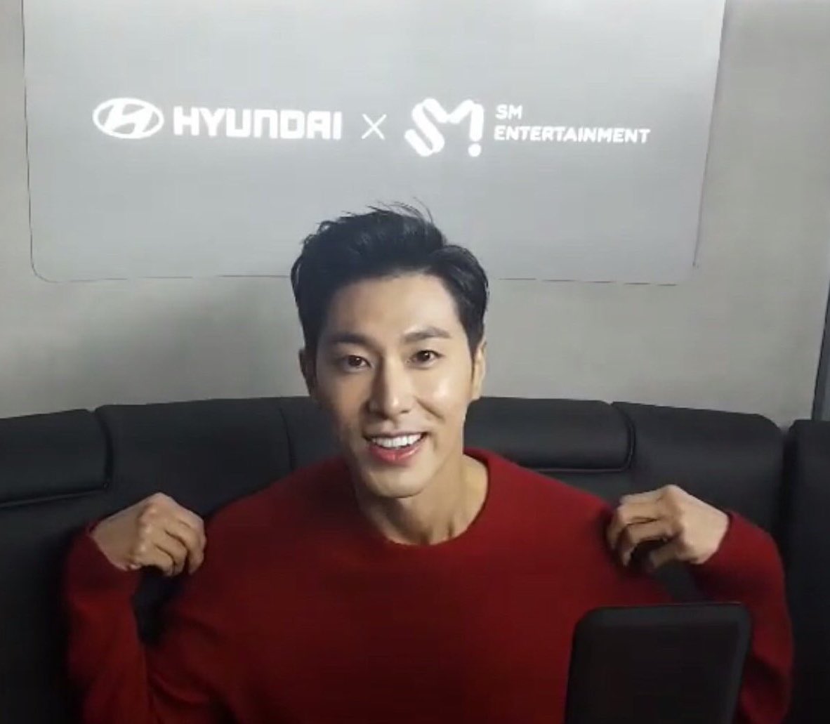 - Yunho gestured to the hyundai x sm logo behind him – he’s in the solati moving studio!!