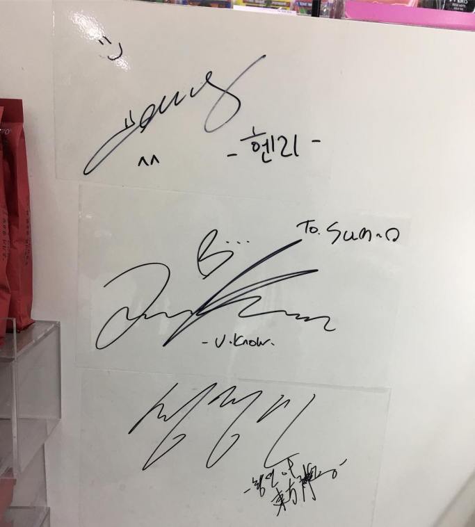 TVXQ’s autographs along with Henry’s spotted at the SUM shop at Gimpo Airport~