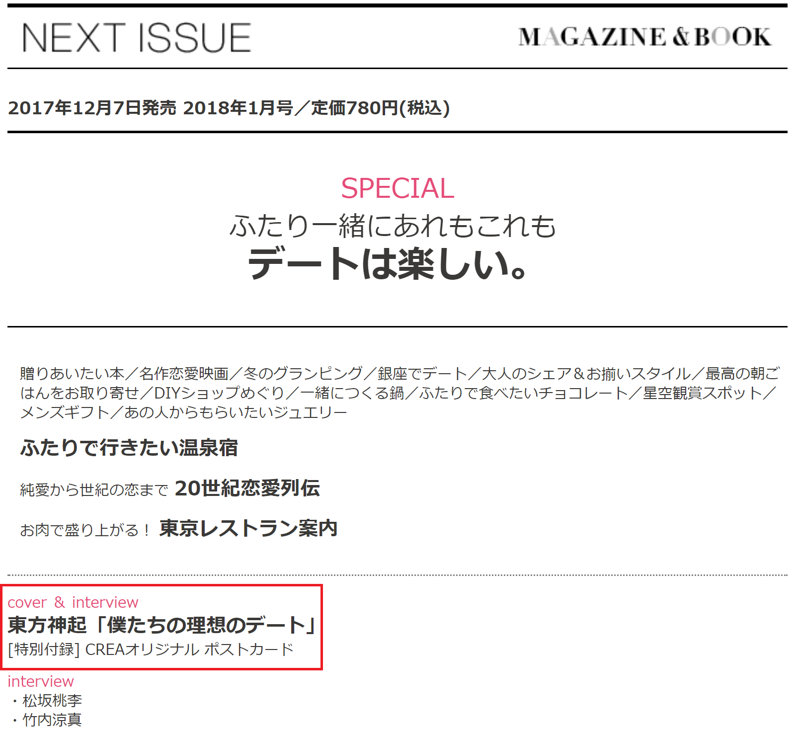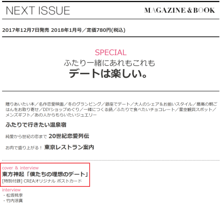 For Japanese magazine 「CREA」- January Issue 2018, to be released on 171207: