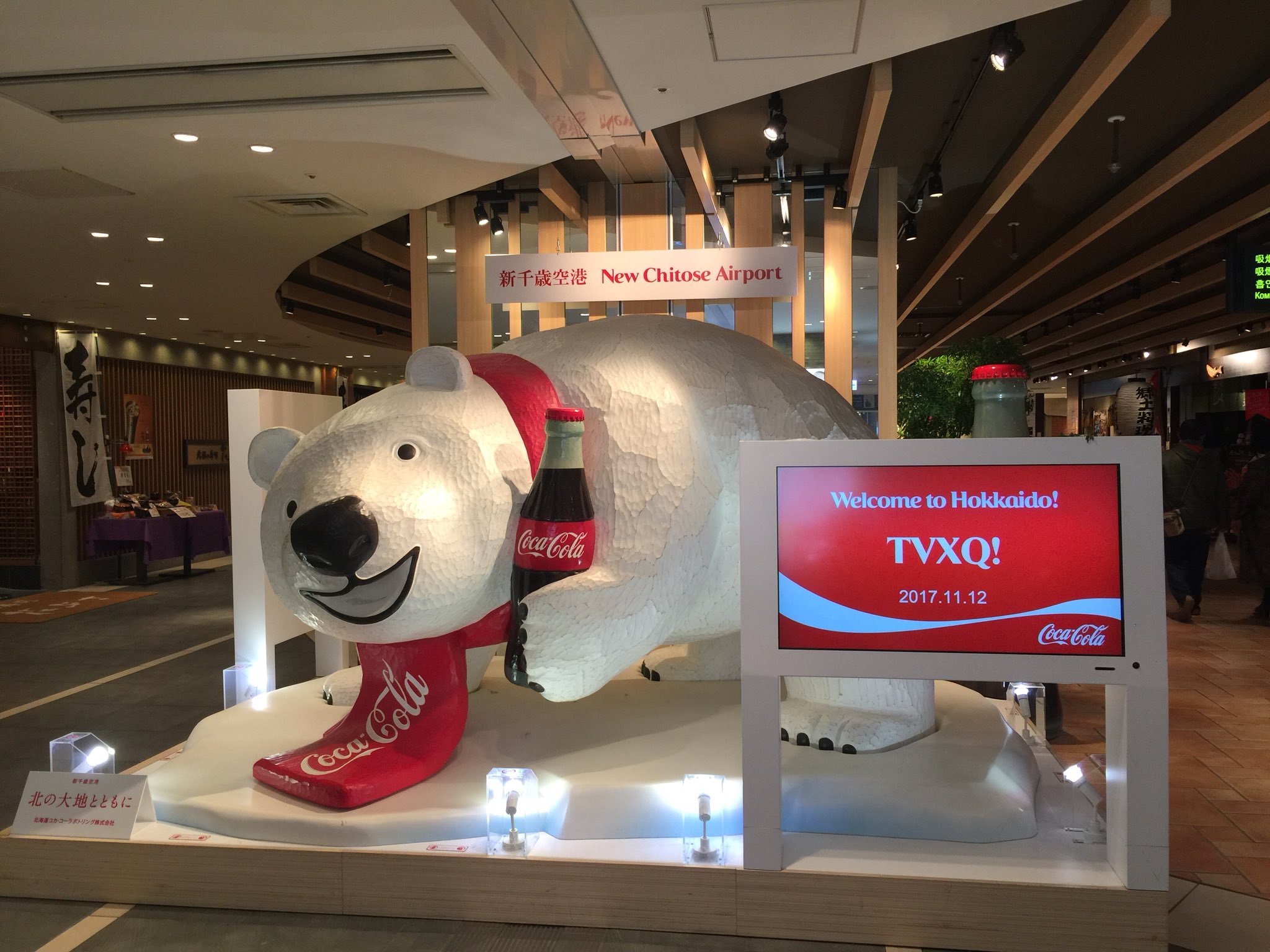 Coco Cola screens at Chitose Airport welcoming TVXQ!~