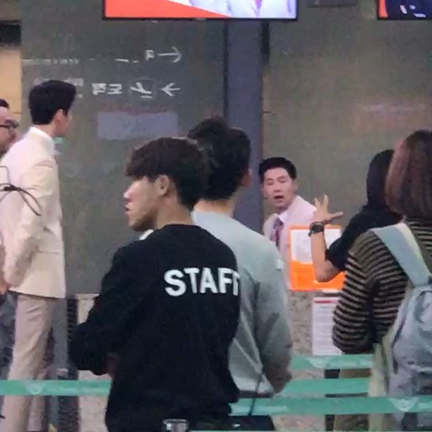 TVXQ (Yunho first then both) were spotted by fans and non-fans at Incheon airport in JEJUair flight attendants outfits filming a cf for JEJUair!