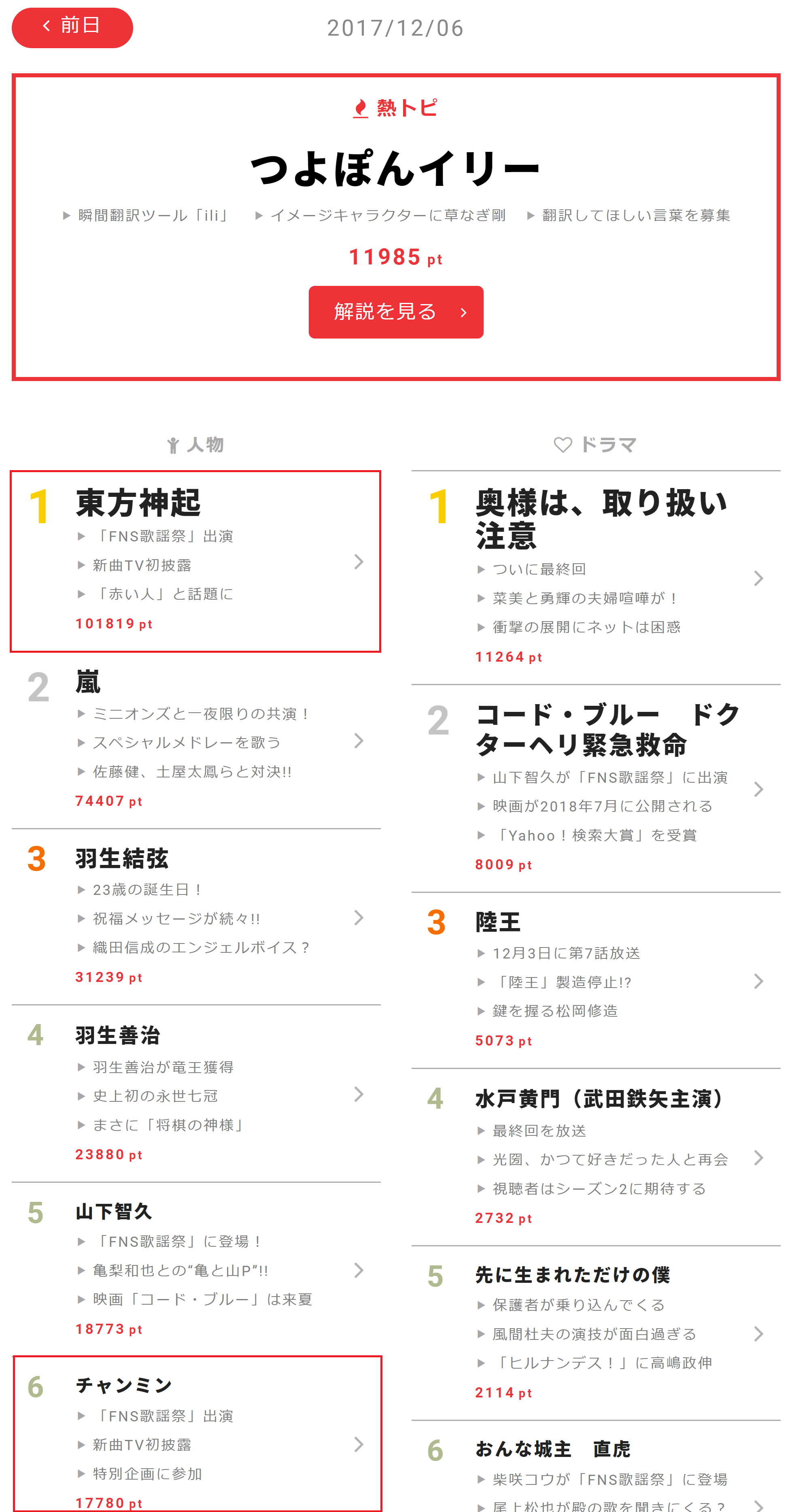 - On Tsuiran: Daily celebrity tweets ranking (2017.12.06):