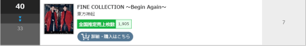Previously Released on 10/25, 東方神起 FINE COLLECTION ~Begin Again~ Album as well in the chart as: