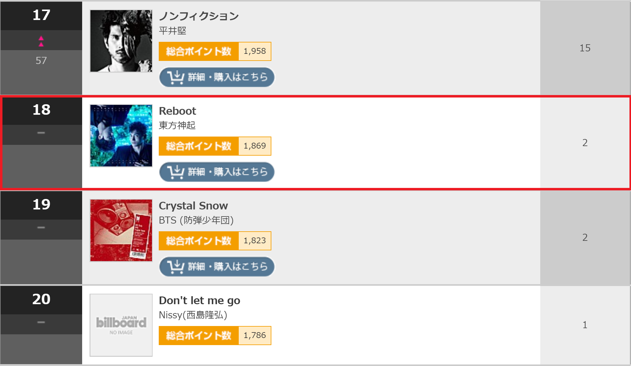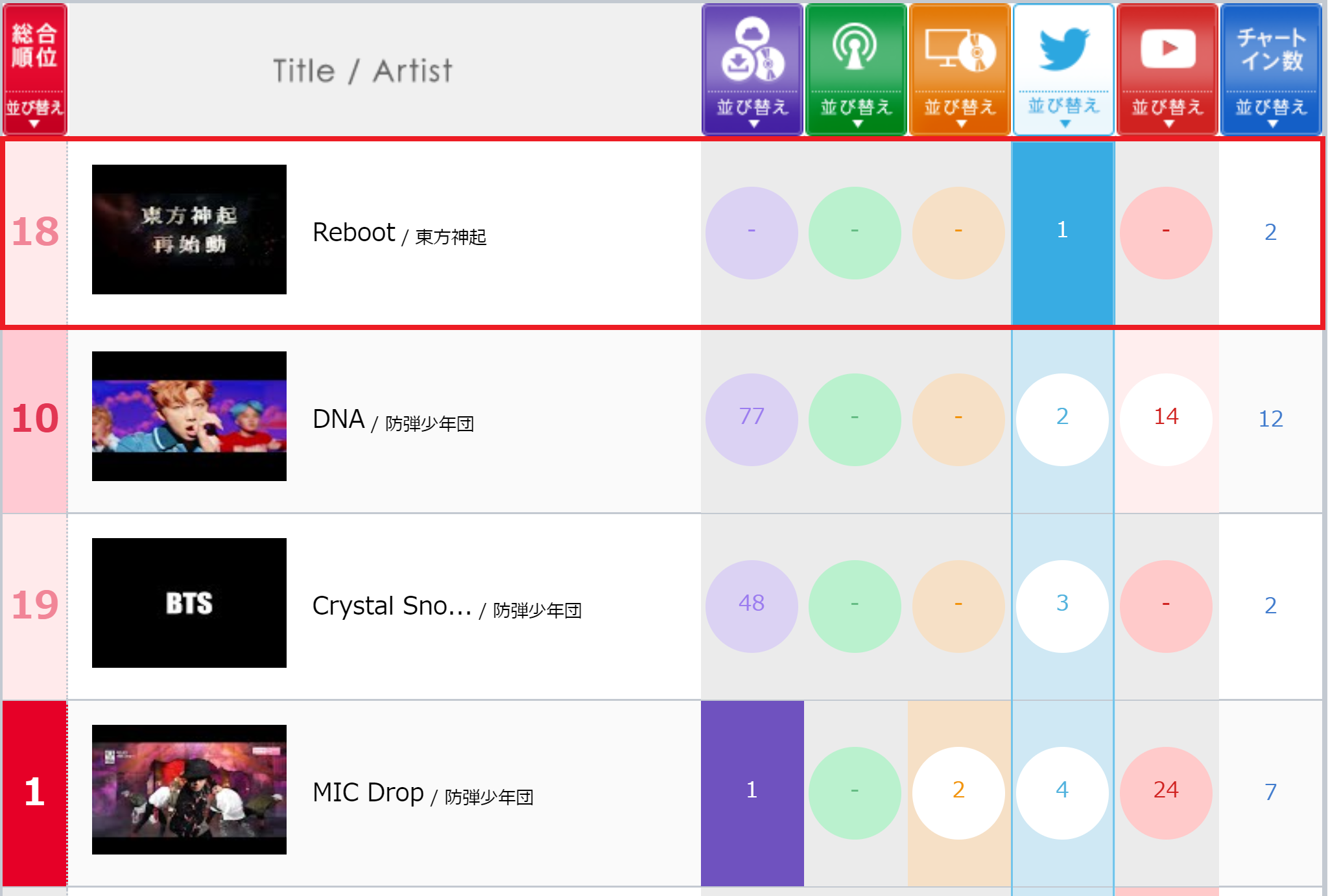 - No.1 東方神起 Reboot on the Billboard JAPAN CHART insight for the week: