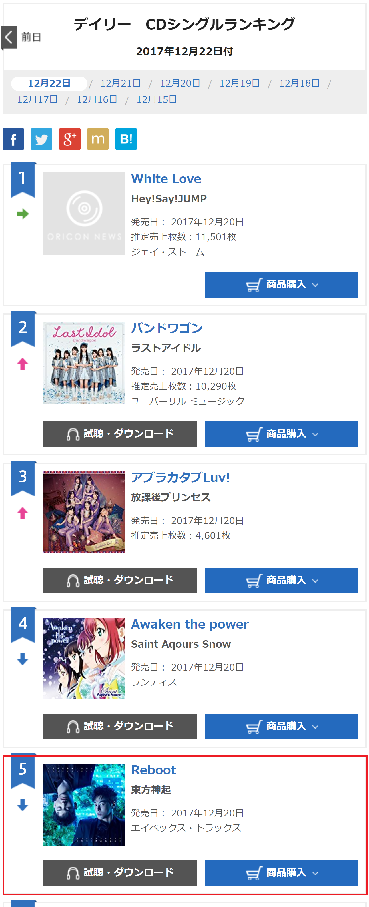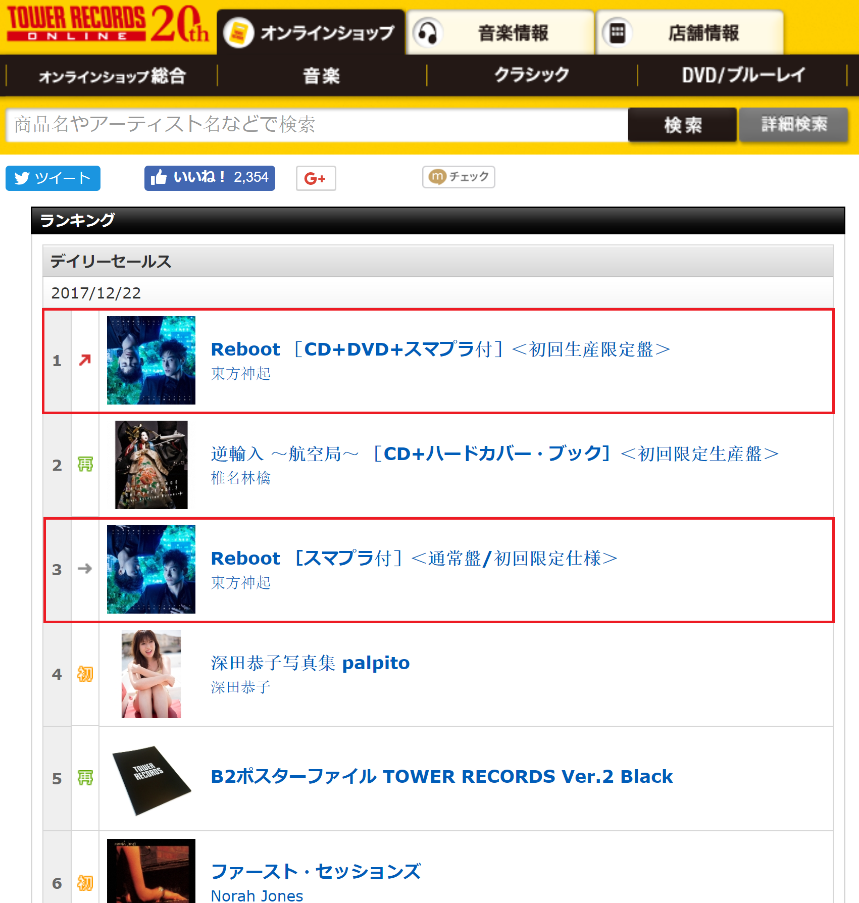 Tower Records Daily Sales ranking for 171223: