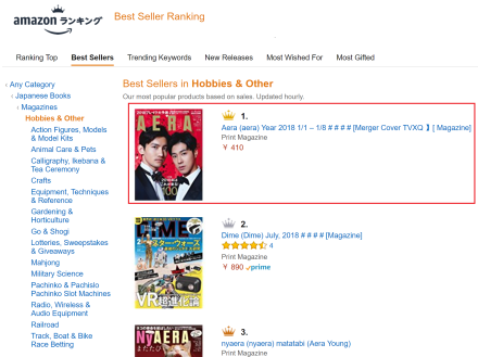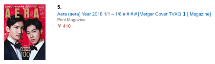 and Tohoshinki’s Magazine AERA- 1/1-1/8 Issue 2018 is still topping Amazon Japan Best Sellers (Real time) for Magazines in Hobbies & Others.
