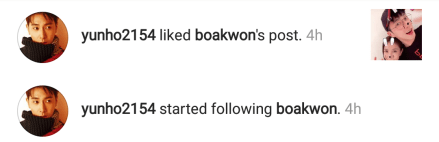 Yunho followed BoA and liked the post, and BoA is also following him~
