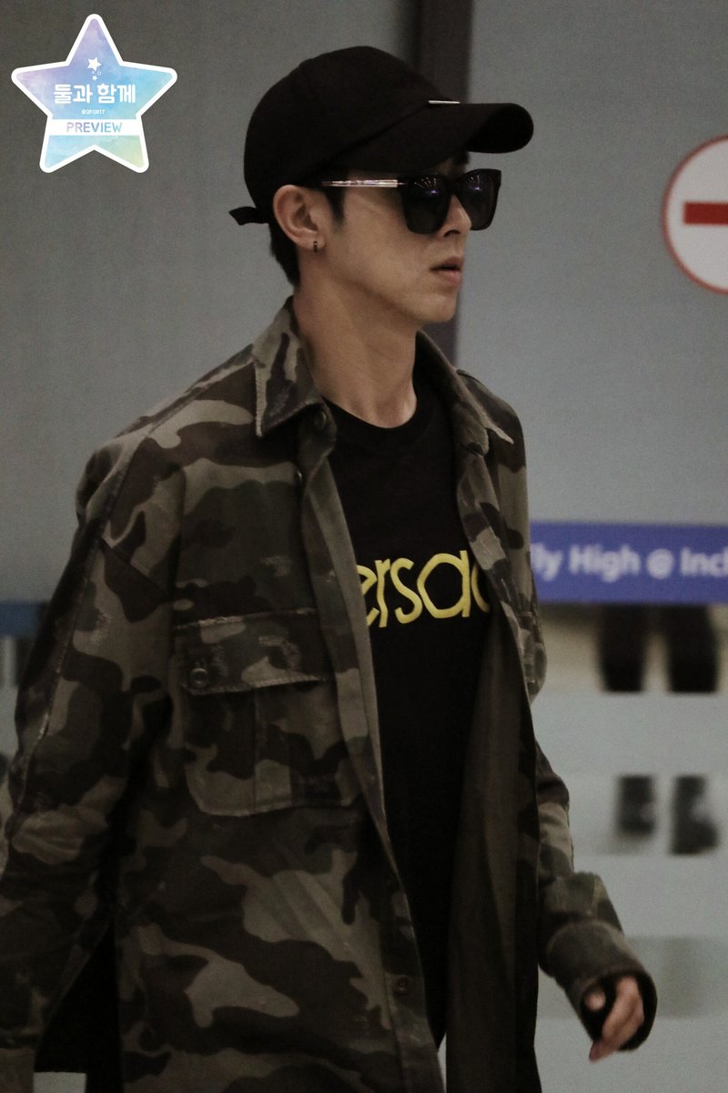 Yunho went to Japan, apparently to Okinawa, with MBC’s Dunia cast crew for a one-week filming, and they just came back arriving at Incheon airport!