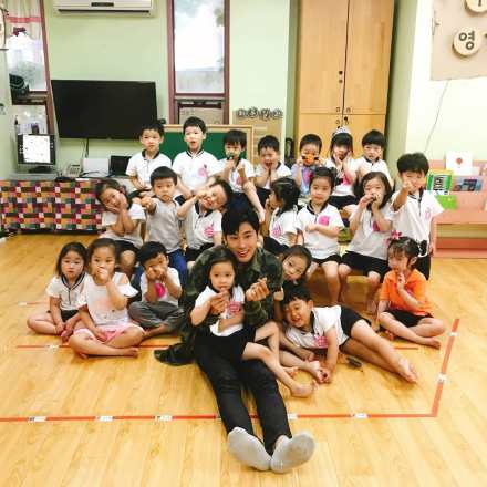Check out his photos and video, so adorable and heartwarming ㅠㅠ and the kids look so happy and excited to see him > w <