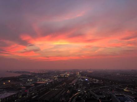 Changmin sharing Tokyo {p/n: possibly Makuhari, Chiba}‘s evening sky after work (check out notes at end of post)~ ^^