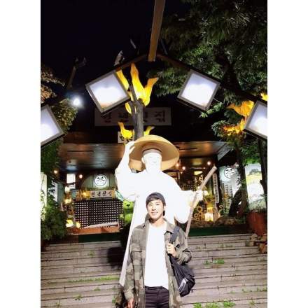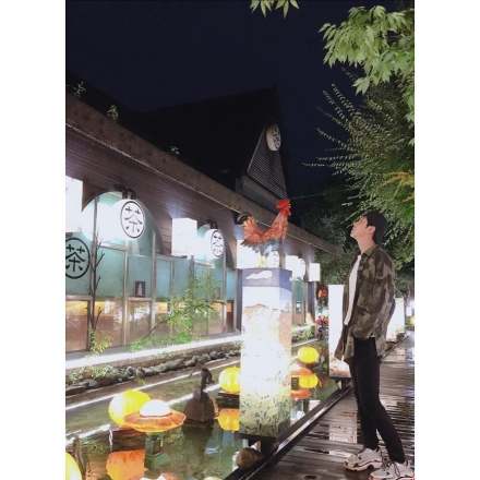 Yunho at the beautiful teahouse Cheonyeon Chatjip 천년찻집 (Millennium Teahouse) and LA RIA restaurant 라리아레스토랑 across of it at Yangpyeong, Gyeonggi-do (google maps: here and here) [cr: @YH_CM_1226_], posted near midnight.