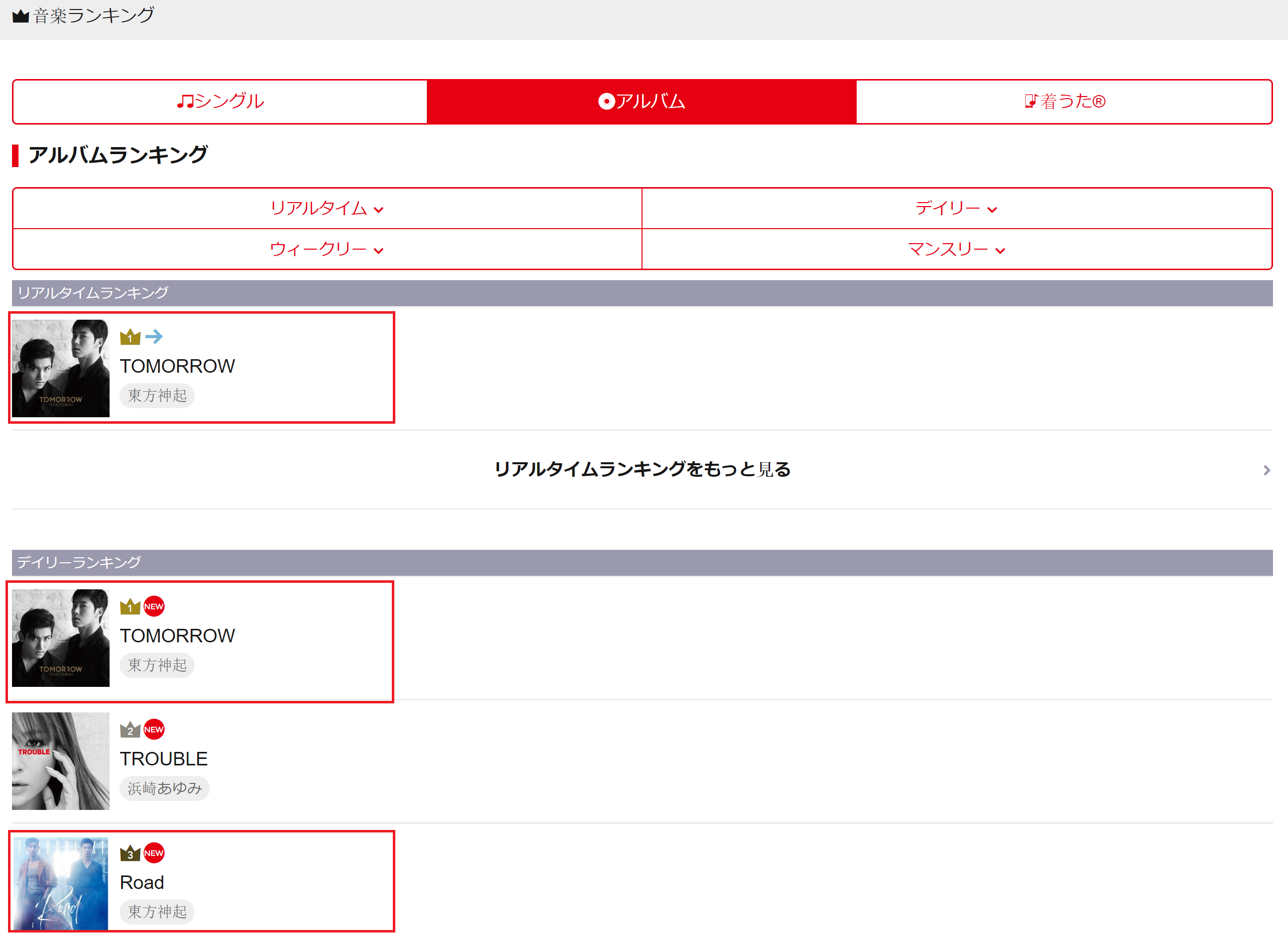 Tohoshinki’s TOMORROW and all songs have been topping mu-mo’s songs and albums real-time and daily downloads charts since the release day on 180919!