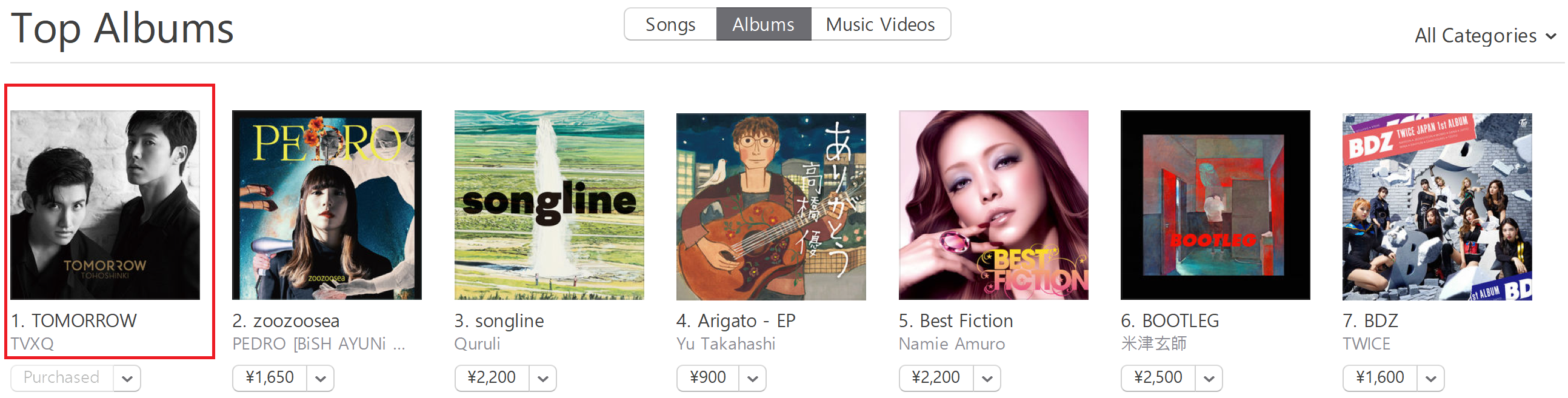 Tohoshinki Album「TOMORROW」has been at the top of iTunes JP Album chart since release date ^^*